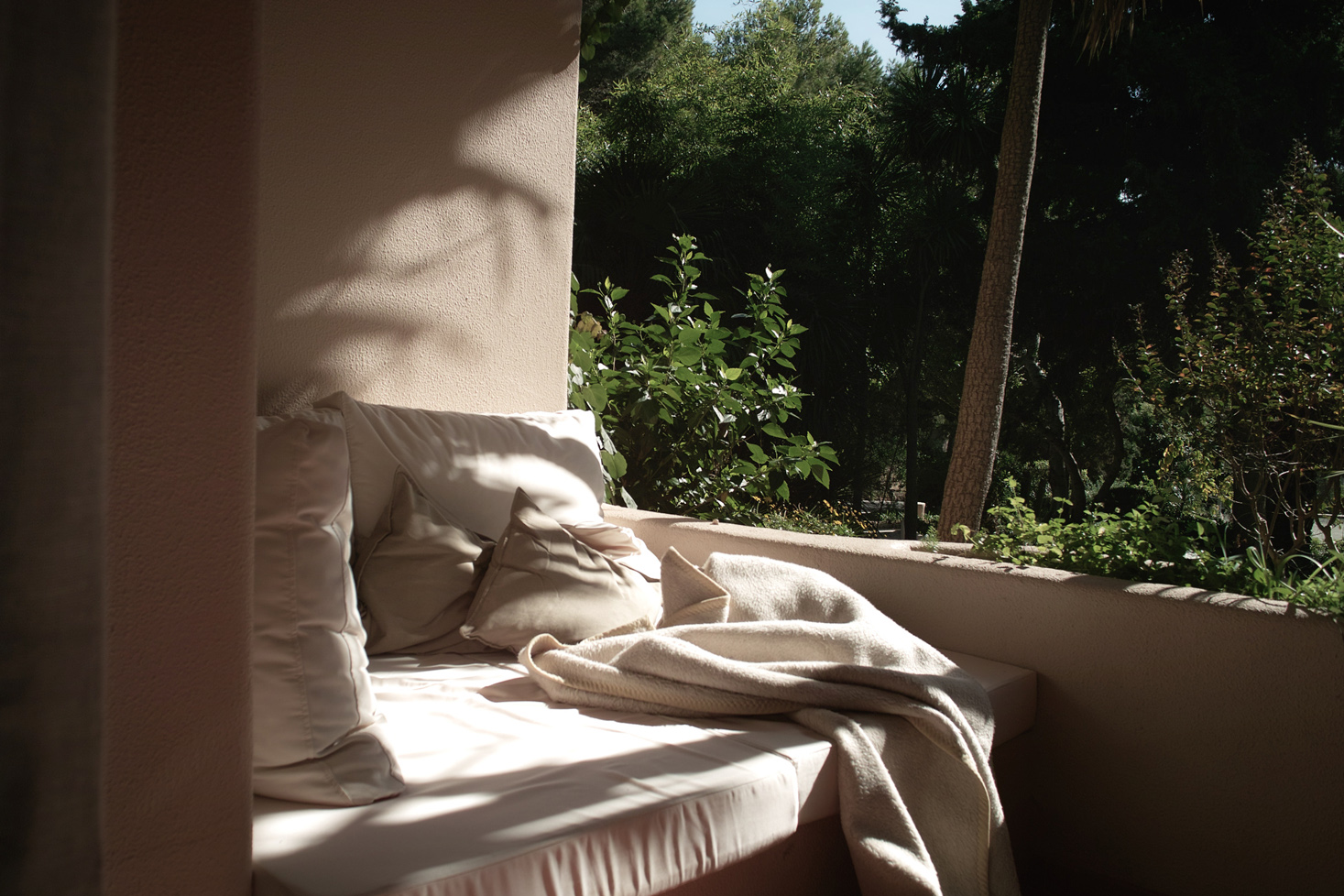 Mit am schönsten war übrigens der Balkon des Zimmers. Hier gab es ein Plätzchen, auf dem ich es mit einem guten Buch und einer Decke locker eine ganze Woche ausgehalten hätte. Absolute Stille und ein Blick in den üppigen Park inklusive.